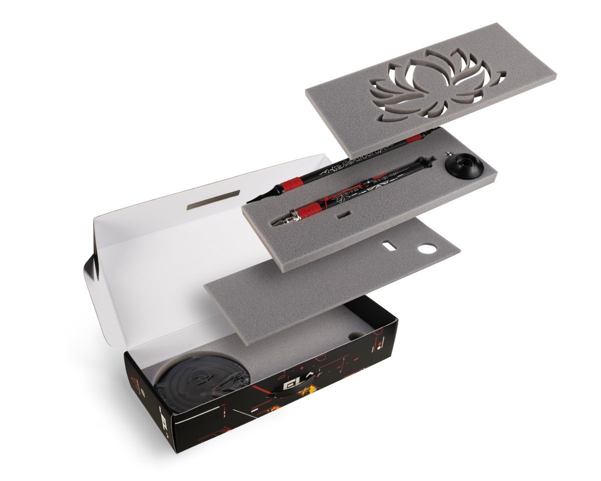 חלקו הפנימי של הגוף, הצלחת, המשתיק, החיבור המגנטי של הצינור והחיבור של הראש כולם עשויים מפלדת אל-חלד איכותית שמונעת מהנרגילה לספוג ריחות וטעמים ומאריכה את אורך החיים שלה. בסיס הגוף עשוי מפולימר. חלקו הפנימי של הצינור עשוי גם כן מפלדת אל-חלד והחלקים הדקורטיביים עשויים מאלומיניום.
